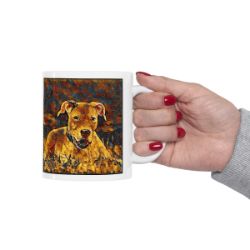 Keep cozy and warm with a nice cuppa, featuring the beloved Dogo Argentino dog breed stylized in our Coloromo Painterly art on a ceramic mug. Lead and BPA-free, these durable mugs are also microwave & dishwasher-safe. Made of white, resilient ceramic in an 11-ounce size, this is the perfect gift for coffee, tea, and hot chocolate lovers.