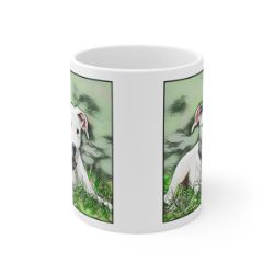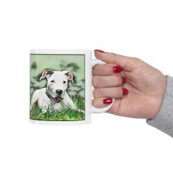 Keep cozy and warm with a nice cuppa, featuring the beloved Dogo Argentino dog breed stylized in our Coloromo Penciled In art on a ceramic mug. Lead and BPA-free, these durable mugs are also microwave & dishwasher-safe. Made of white, resilient ceramic in an 11-ounce size, this is the perfect gift for coffee, tea, and hot chocolate lovers.