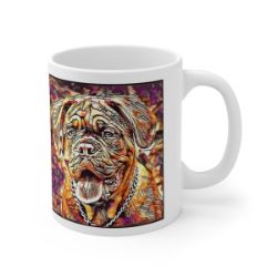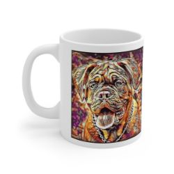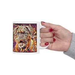 Keep cozy and warm with a nice cuppa, featuring the beloved Dogue de Bordeux dog breed stylized in our Coloromo Hipster art on a ceramic mug. Lead and BPA-free, these durable mugs are also microwave & dishwasher-safe. Made of white, resilient ceramic in an 11-ounce size, this is the perfect gift for coffee, tea, and hot chocolate lovers.