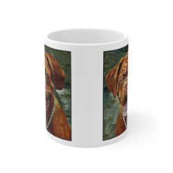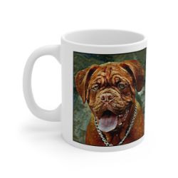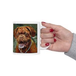 Keep cozy and warm with a nice cuppa, featuring the beloved Dogue de Bordeux dog breed stylized in our Coloromo Lord Lil Bit art on a ceramic mug. Lead and BPA-free, these durable mugs are also microwave & dishwasher-safe. Made of white, resilient ceramic in an 11-ounce size, this is the perfect gift for coffee, tea, and hot chocolate lovers.