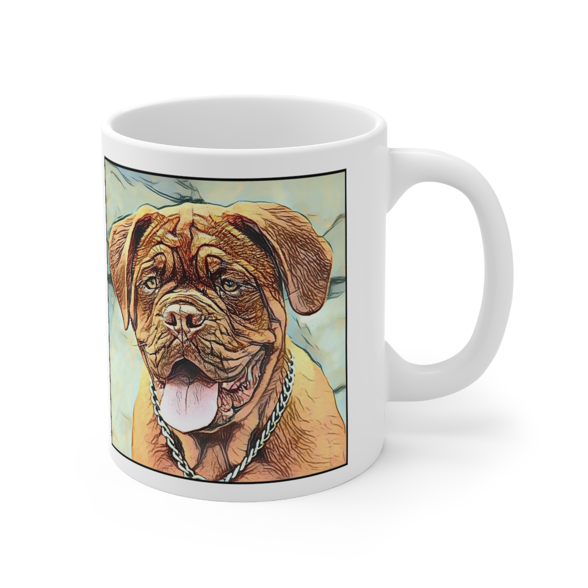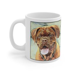 Keep cozy and warm with a nice cuppa, featuring the beloved Dogue de Bordeux dog breed stylized in our Coloromo Penciled In art on a ceramic mug. Lead and BPA-free, these durable mugs are also microwave & dishwasher-safe. Made of white, resilient ceramic in an 11-ounce size, this is the perfect gift for coffee, tea, and hot chocolate lovers.