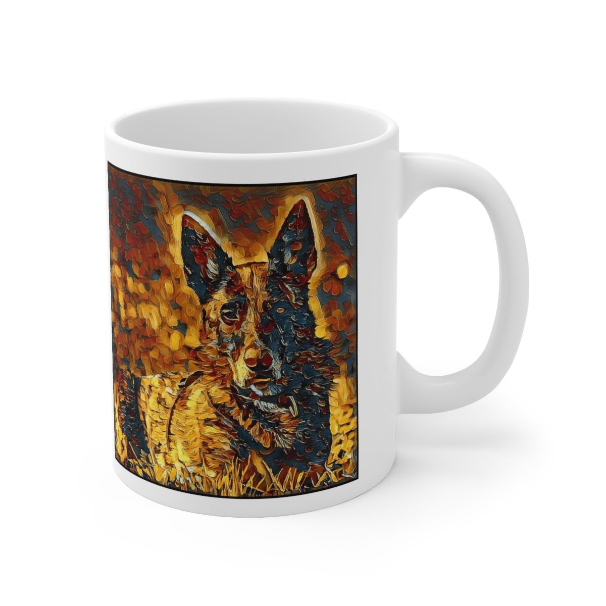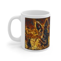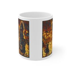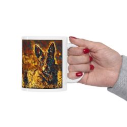 Keep cozy and warm with a nice cuppa, featuring the beloved Dutch Shepherd dog breed stylized in our Coloromo Painterly art on a ceramic mug. Lead and BPA-free, these durable mugs are also microwave & dishwasher-safe. Made of white, resilient ceramic in an 11-ounce size, this is the perfect gift for coffee, tea, and hot chocolate lovers.