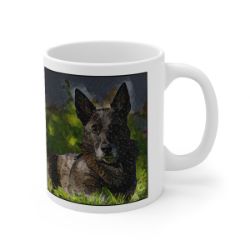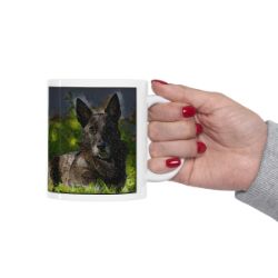 Keep cozy and warm with a nice cuppa, featuring the beloved Dutch Shepherd dog breed stylized in our Coloromo Rock Candy art on a ceramic mug. Lead and BPA-free, these durable mugs are also microwave & dishwasher-safe. Made of white, resilient ceramic in an 11-ounce size, this is the perfect gift for coffee, tea, and hot chocolate lovers.