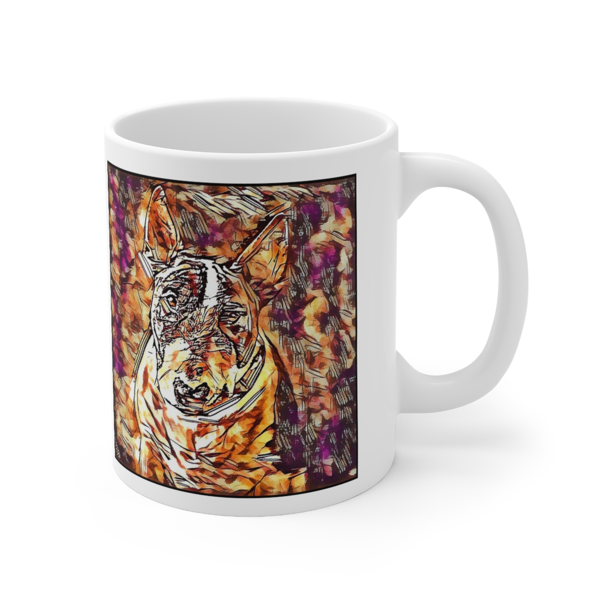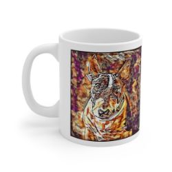 Keep cozy and warm with a nice cuppa, featuring the beloved English Bull Terrier dog breed stylized in our Coloromo Hipster art on a ceramic mug. Lead and BPA-free, these durable mugs are also microwave & dishwasher-safe. Made of white, resilient ceramic in an 11-ounce size, this is the perfect gift for coffee, tea, and hot chocolate lovers.