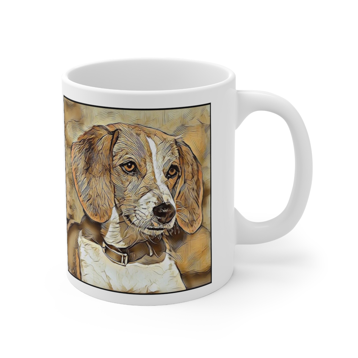 Keep cozy and warm with a nice cuppa, featuring the beloved English Foxhound dog breed stylized in our Coloromo Hairy Styles art on a ceramic mug. Lead and BPA-free, these durable mugs are also microwave & dishwasher-safe. Made of white, resilient ceramic in an 11-ounce size, this is the perfect gift for coffee, tea, and hot chocolate lovers.