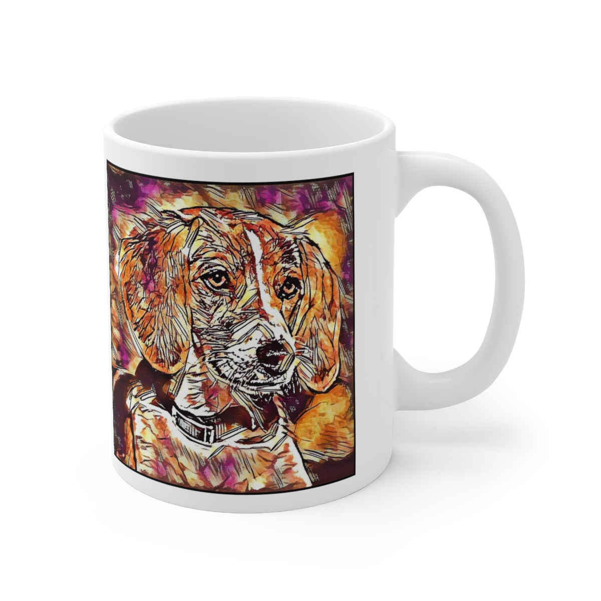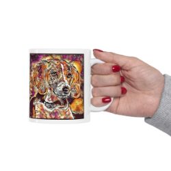 Keep cozy and warm with a nice cuppa, featuring the beloved English Foxhound dog breed stylized in our Coloromo Hipster art on a ceramic mug. Lead and BPA-free, these durable mugs are also microwave & dishwasher-safe. Made of white, resilient ceramic in an 11-ounce size, this is the perfect gift for coffee, tea, and hot chocolate lovers.