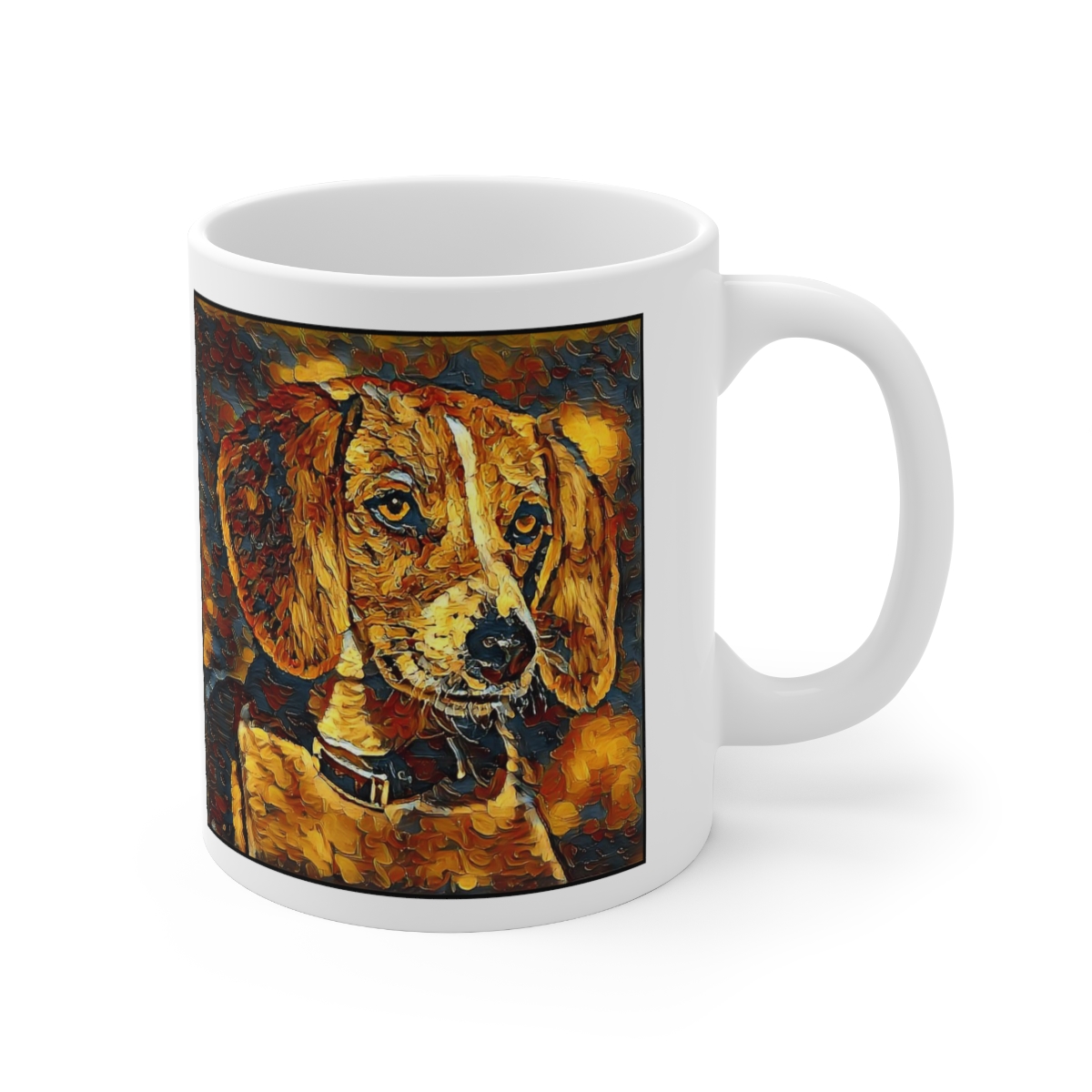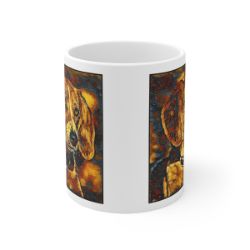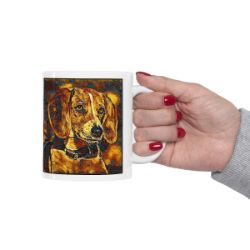 Keep cozy and warm with a nice cuppa, featuring the beloved English Foxhound dog breed stylized in our Coloromo Painterly art on a ceramic mug. Lead and BPA-free, these durable mugs are also microwave & dishwasher-safe. Made of white, resilient ceramic in an 11-ounce size, this is the perfect gift for coffee, tea, and hot chocolate lovers.
