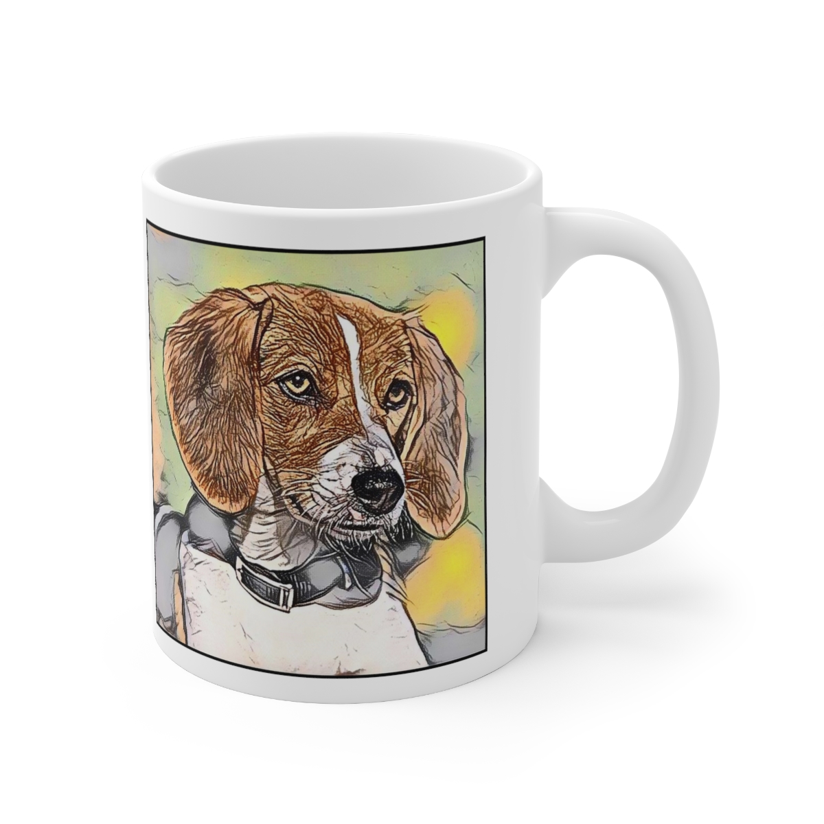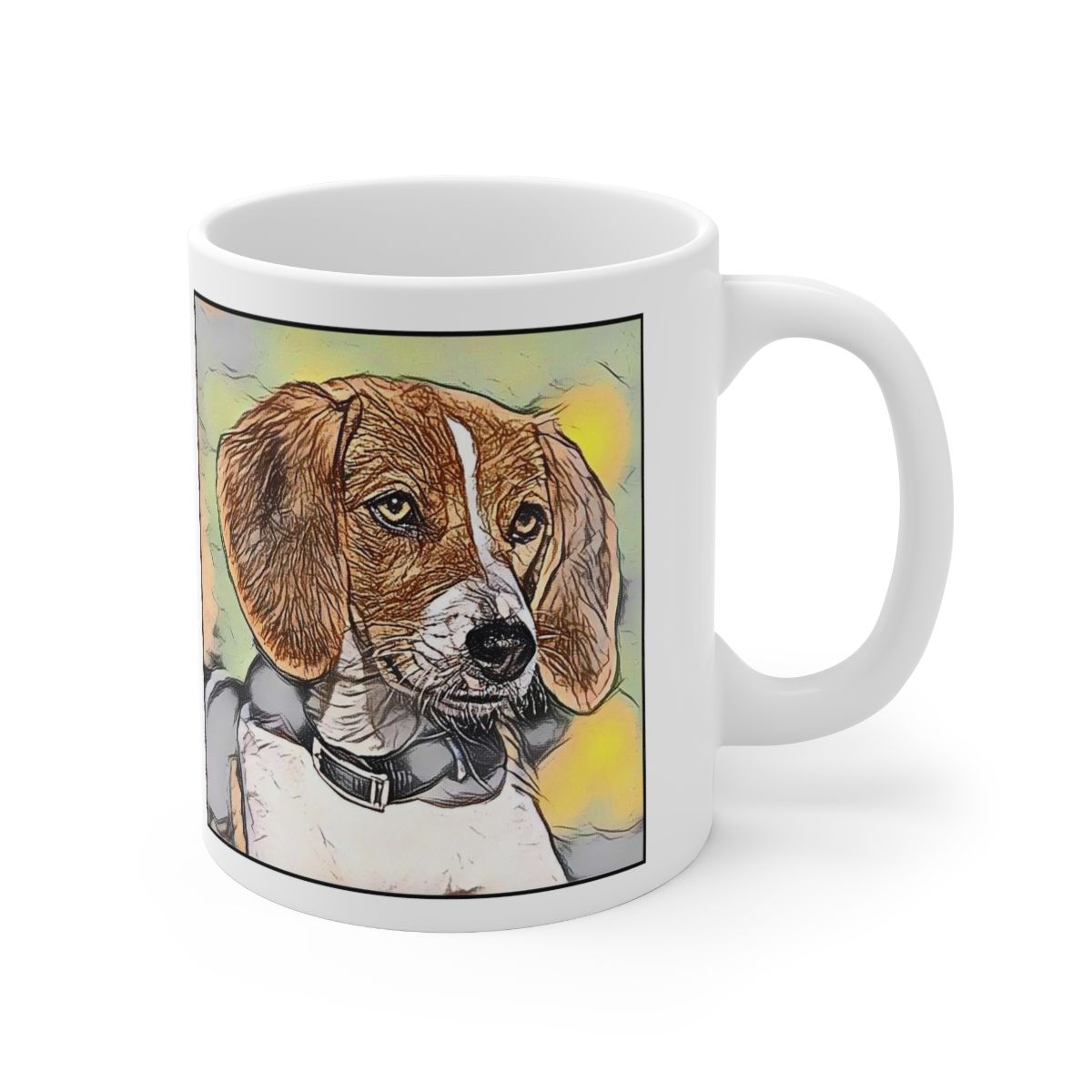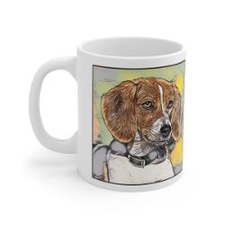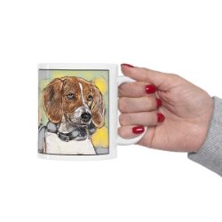 Keep cozy and warm with a nice cuppa, featuring the beloved English Foxhound dog breed stylized in our Coloromo Penciled In art on a ceramic mug. Lead and BPA-free, these durable mugs are also microwave & dishwasher-safe. Made of white, resilient ceramic in an 11-ounce size, this is the perfect gift for coffee, tea, and hot chocolate lovers.