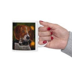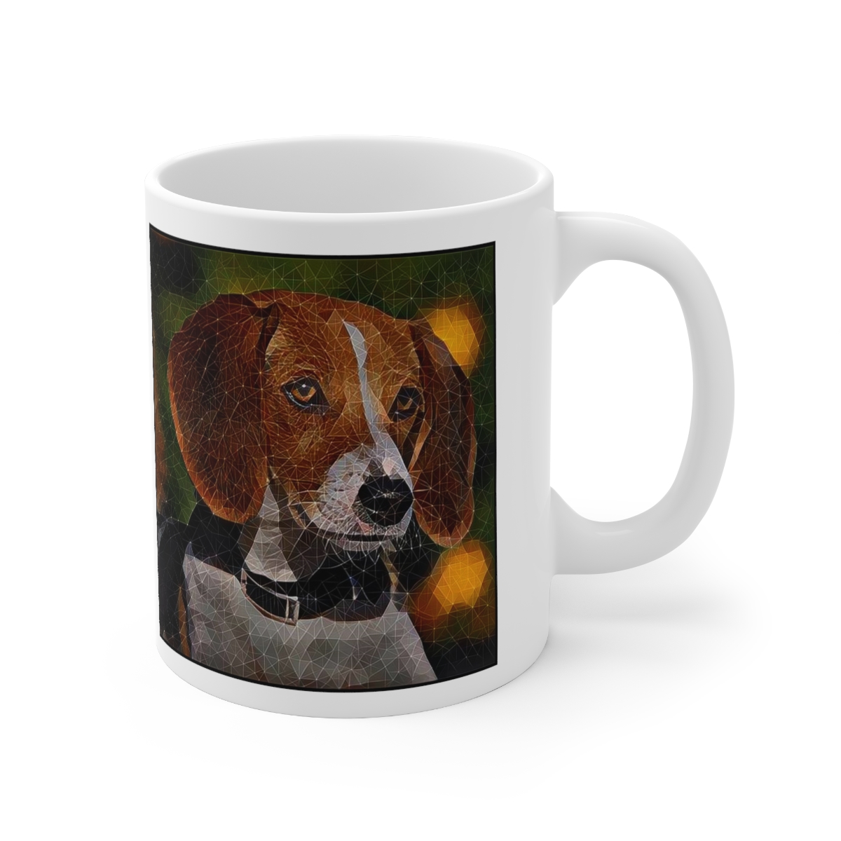 Keep cozy and warm with a nice cuppa, featuring the beloved English Foxhound dog breed stylized in our Coloromo Rock Candy art on a ceramic mug. Lead and BPA-free, these durable mugs are also microwave & dishwasher-safe. Made of white, resilient ceramic in an 11-ounce size, this is the perfect gift for coffee, tea, and hot chocolate lovers.