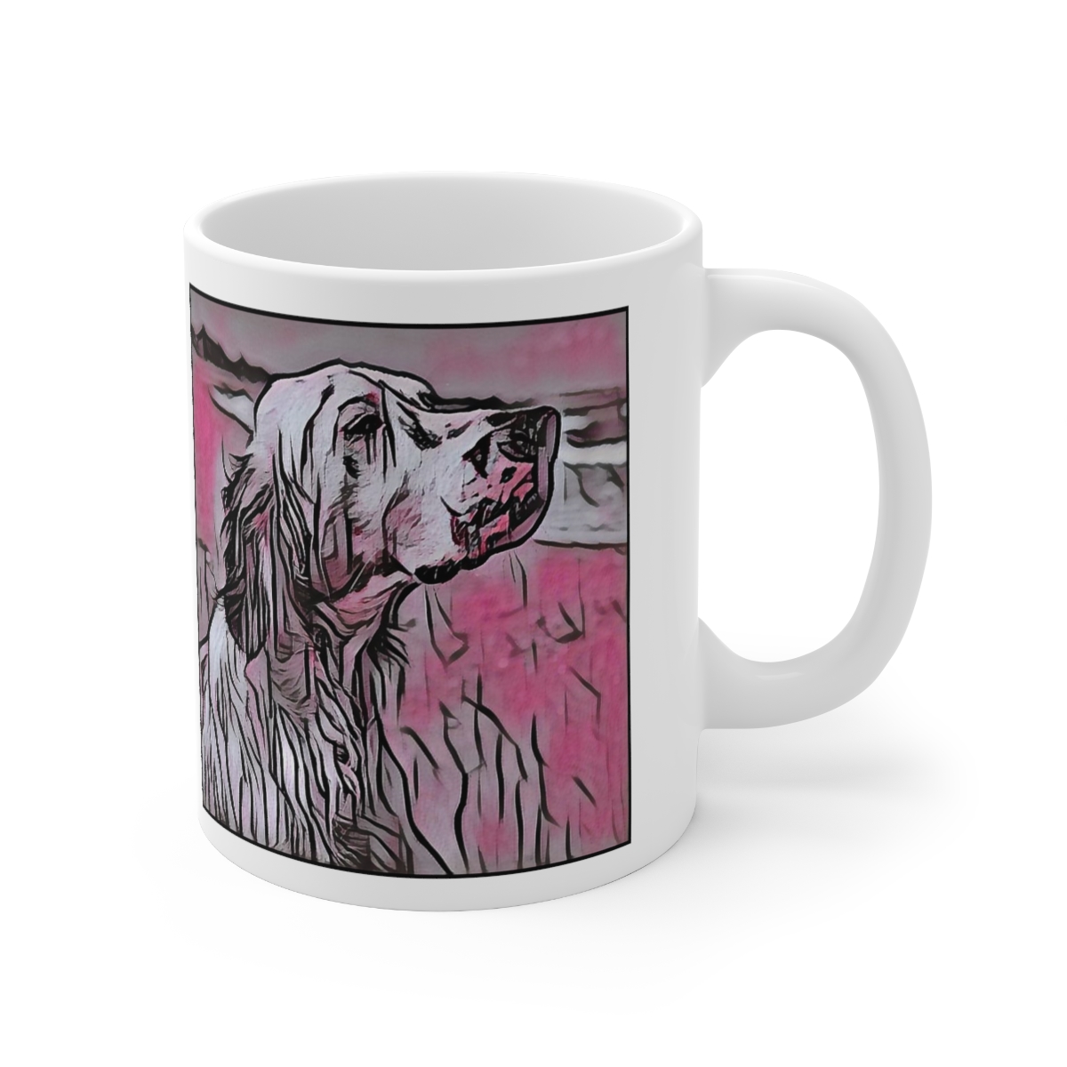 Keep cozy and warm with a nice cuppa, featuring the beloved English Setter dog breed stylized in our Coloromo Comic Pink art on a ceramic mug. Lead and BPA-free, these durable mugs are also microwave & dishwasher-safe. Made of white, resilient ceramic in an 11-ounce size, this is the perfect gift for coffee, tea, and hot chocolate lovers.