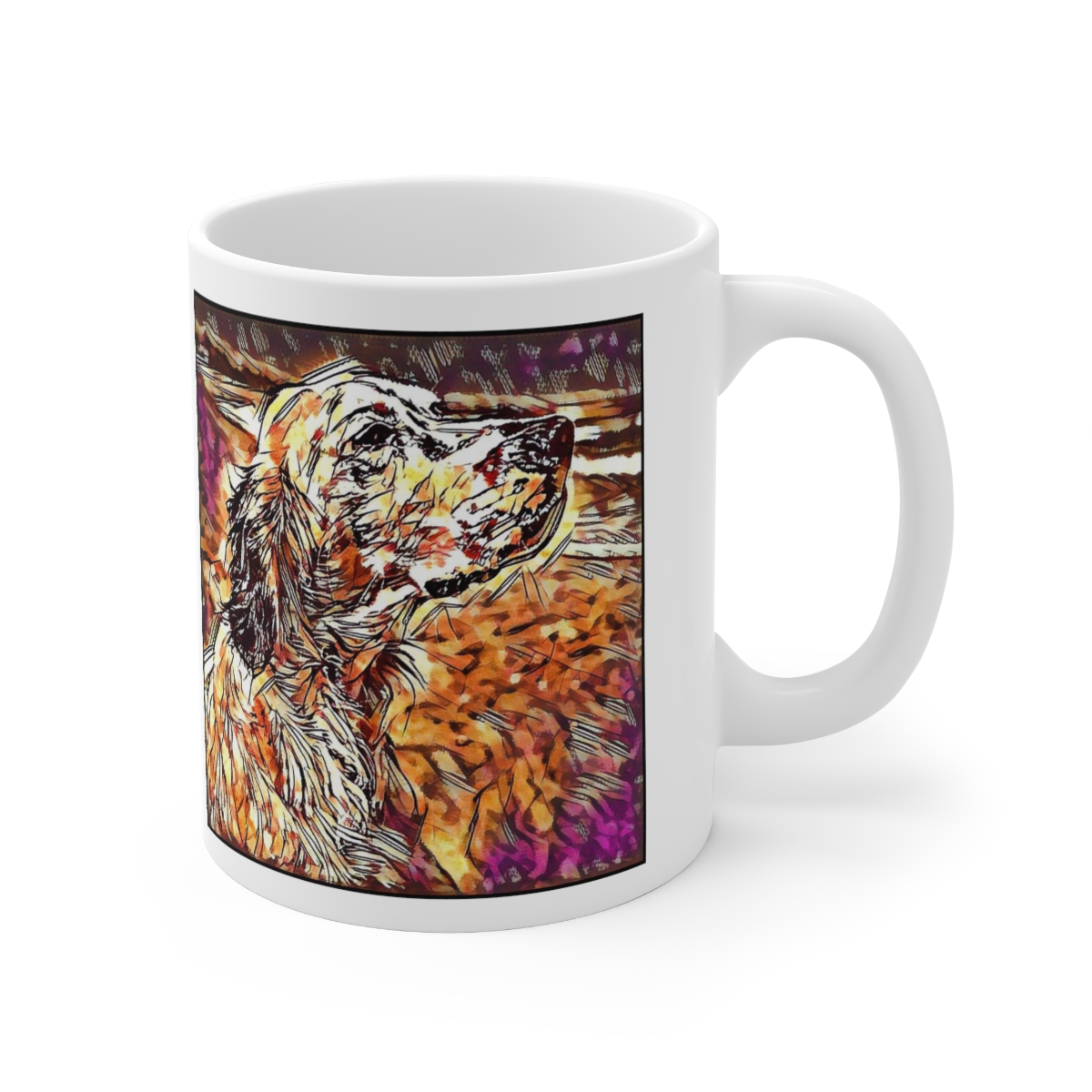 Keep cozy and warm with a nice cuppa, featuring the beloved English Setter dog breed stylized in our Coloromo Hipster art on a ceramic mug. Lead and BPA-free, these durable mugs are also microwave & dishwasher-safe. Made of white, resilient ceramic in an 11-ounce size, this is the perfect gift for coffee, tea, and hot chocolate lovers.