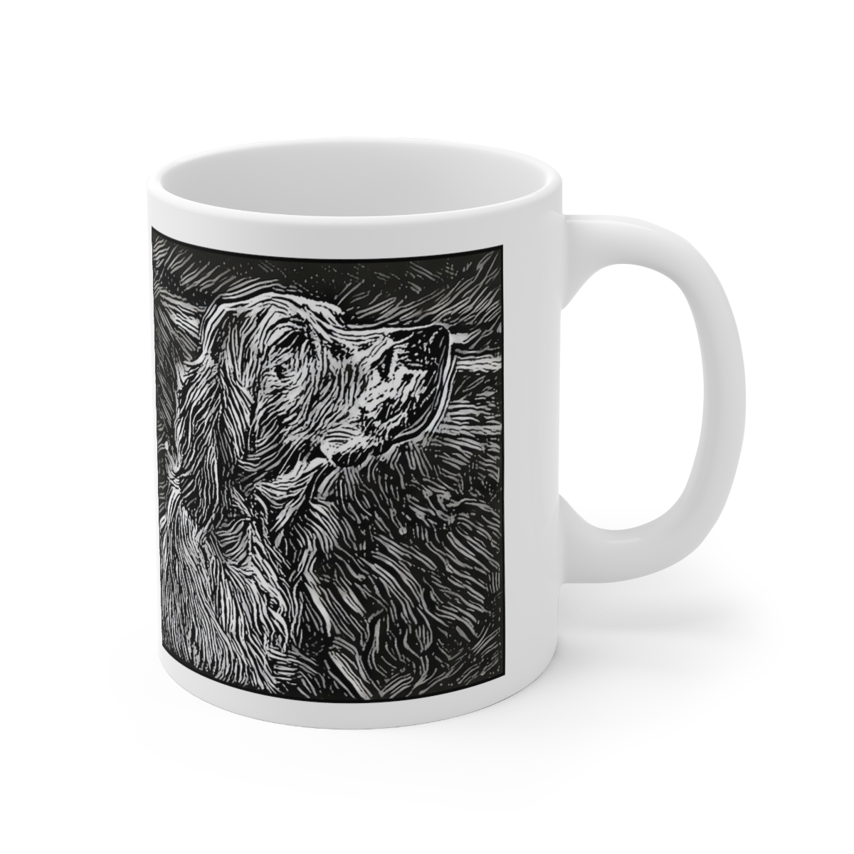 Keep cozy and warm with a nice cuppa, featuring the beloved English Setter dog breed stylized in our Coloromo Licorice Lines art on a ceramic mug. Lead and BPA-free, these durable mugs are also microwave & dishwasher-safe. Made of white, resilient ceramic in an 11-ounce size, this is the perfect gift for coffee, tea, and hot chocolate lovers.