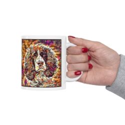 Keep cozy and warm with a nice cuppa, featuring the beloved English Springer Spaniel dog breed stylized in our Coloromo Hipster art on a ceramic mug. Lead and BPA-free, these durable mugs are also microwave & dishwasher-safe. Made of white, resilient ceramic in an 11-ounce size, this is the perfect gift for coffee, tea, and hot chocolate lovers.