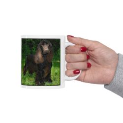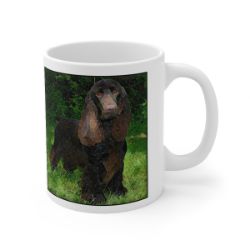 Keep cozy and warm with a nice cuppa, featuring the beloved Field Spaniel dog breed stylized in our Coloromo Rock Candy art on a ceramic mug. Lead and BPA-free, these durable mugs are also microwave & dishwasher-safe. Made of white, resilient ceramic in an 11-ounce size, this is the perfect gift for coffee, tea, and hot chocolate lovers.