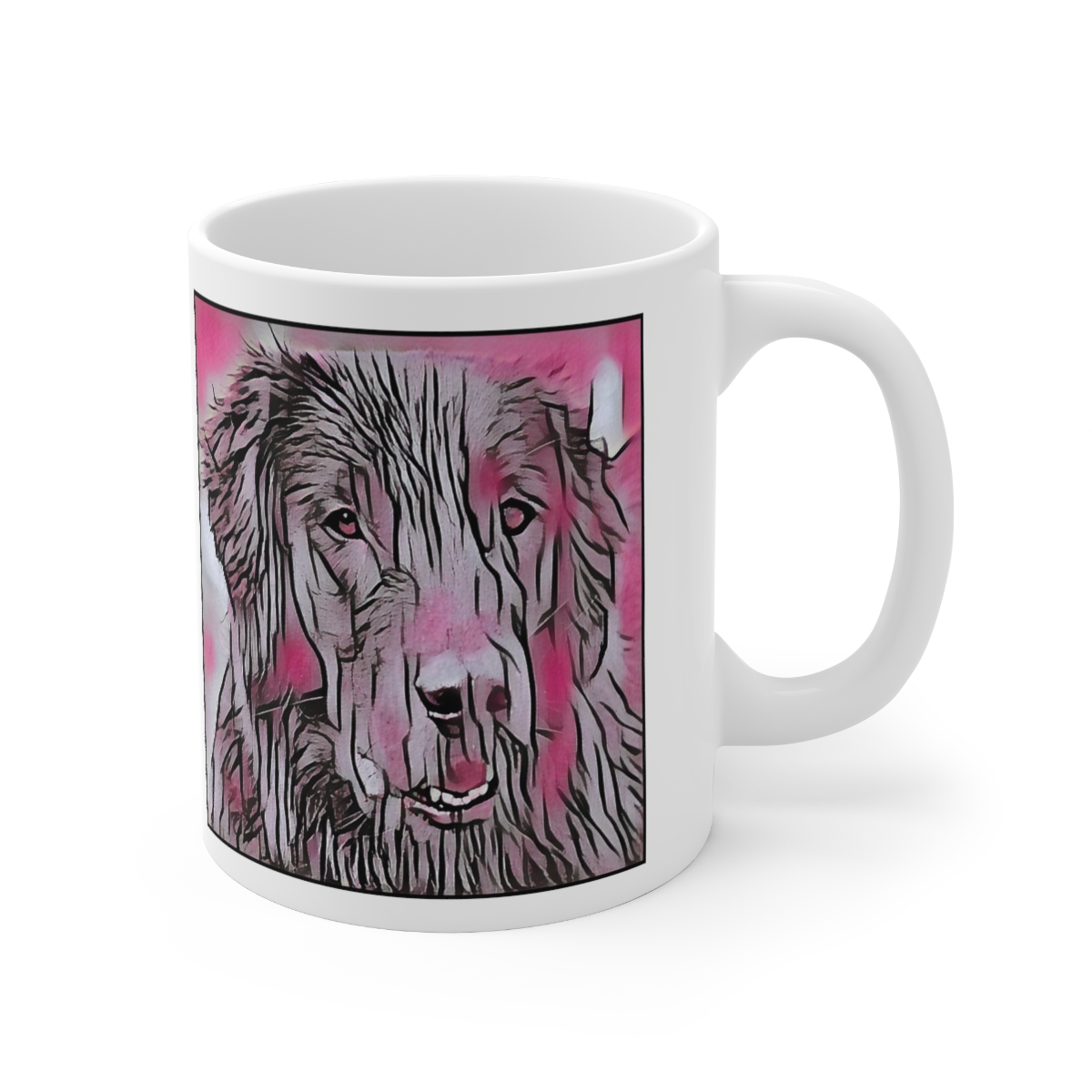 Keep cozy and warm with a nice cuppa, featuring the beloved Flat Coated Retriever dog breed stylized in our Coloromo Comic Pink art on a ceramic mug. Lead and BPA-free, these durable mugs are also microwave & dishwasher-safe. Made of white, resilient ceramic in an 11-ounce size, this is the perfect gift for coffee, tea, and hot chocolate lovers.