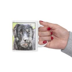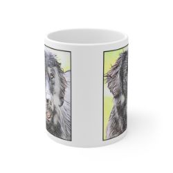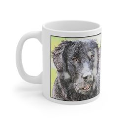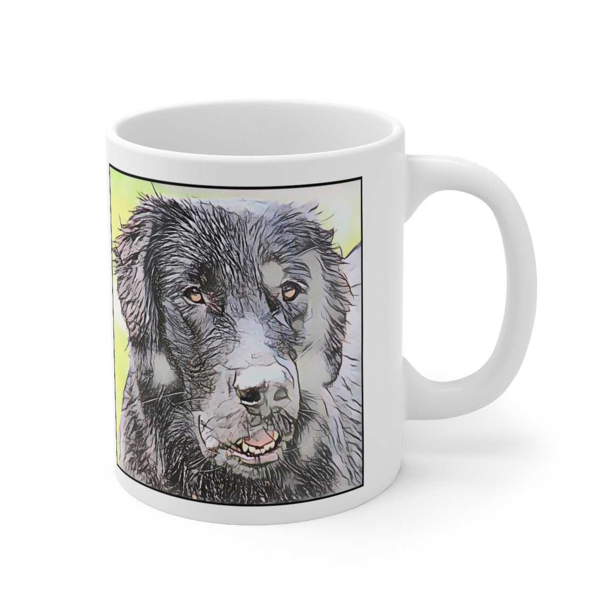 Keep cozy and warm with a nice cuppa, featuring the beloved Flat Coated Retriever dog breed stylized in our Coloromo Penciled In art on a ceramic mug. Lead and BPA-free, these durable mugs are also microwave & dishwasher-safe. Made of white, resilient ceramic in an 11-ounce size, this is the perfect gift for coffee, tea, and hot chocolate lovers.