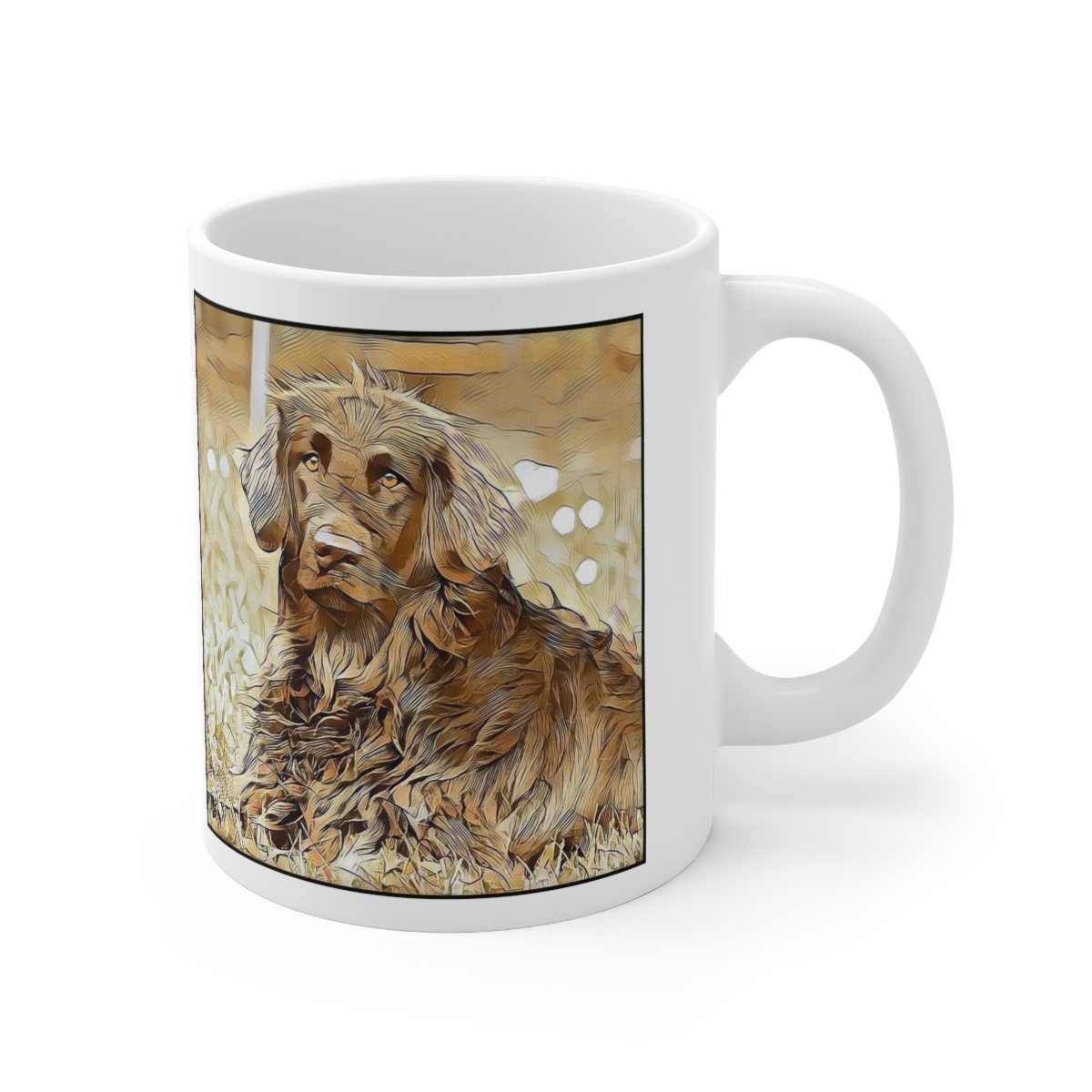 Keep cozy and warm with a nice cuppa, featuring the beloved German Long Haired Pointer dog breed stylized in our Coloromo Hairy Styles art on a ceramic mug. Lead and BPA-free, these durable mugs are also microwave & dishwasher-safe. Made of white, resilient ceramic in an 11-ounce size, this is the perfect gift for coffee, tea, and hot chocolate lovers.