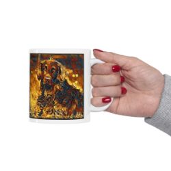Keep cozy and warm with a nice cuppa, featuring the beloved German Long Haired Pointer dog breed stylized in our Coloromo Painterly art on a ceramic mug. Lead and BPA-free, these durable mugs are also microwave & dishwasher-safe. Made of white, resilient ceramic in an 11-ounce size, this is the perfect gift for coffee, tea, and hot chocolate lovers.