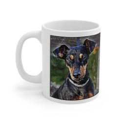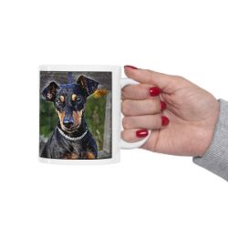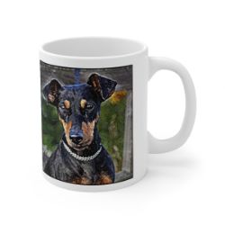 Keep cozy and warm with a nice cuppa, featuring the beloved German Pinscher dog breed stylized in our Coloromo Lord Lil Bit art on a ceramic mug. Lead and BPA-free, these durable mugs are also microwave & dishwasher-safe. Made of white, resilient ceramic in an 11-ounce size, this is the perfect gift for coffee, tea, and hot chocolate lovers.