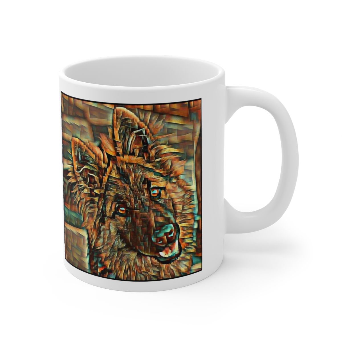 Keep cozy and warm with a nice cuppa, featuring the beloved German Shepherd dog breed stylized in our Coloromo Cool Cubist art on a ceramic mug. Lead and BPA-free, these durable mugs are also microwave & dishwasher-safe. Made of white, resilient ceramic in an 11-ounce size, this is the perfect gift for coffee, tea, and hot chocolate lovers.