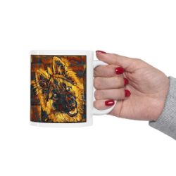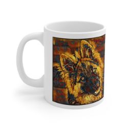 Keep cozy and warm with a nice cuppa, featuring the beloved German Shepherd dog breed stylized in our Coloromo Painterly art on a ceramic mug. Lead and BPA-free, these durable mugs are also microwave & dishwasher-safe. Made of white, resilient ceramic in an 11-ounce size, this is the perfect gift for coffee, tea, and hot chocolate lovers.