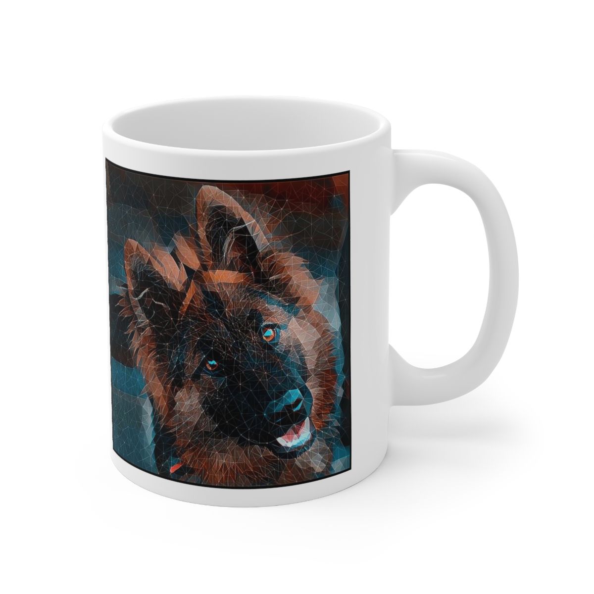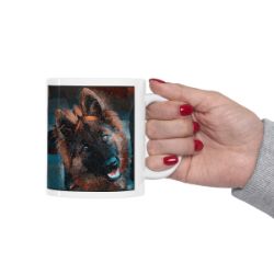 Keep cozy and warm with a nice cuppa, featuring the beloved German Shepherd dog breed stylized in our Coloromo Rock Candy art on a ceramic mug. Lead and BPA-free, these durable mugs are also microwave & dishwasher-safe. Made of white, resilient ceramic in an 11-ounce size, this is the perfect gift for coffee, tea, and hot chocolate lovers.