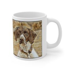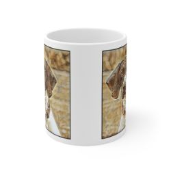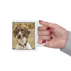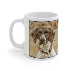 Keep cozy and warm with a nice cuppa, featuring the beloved German Shorthaired Pointer dog breed stylized in our Coloromo Hairy Styles art on a ceramic mug. Lead and BPA-free, these durable mugs are also microwave & dishwasher-safe. Made of white, resilient ceramic in an 11-ounce size, this is the perfect gift for coffee, tea, and hot chocolate lovers.