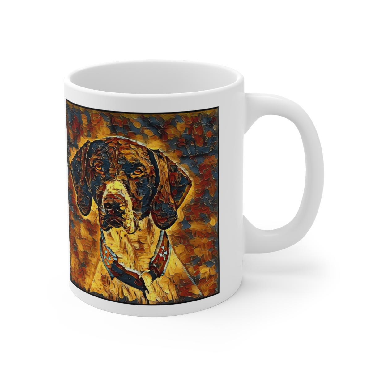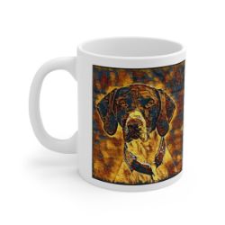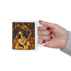 Keep cozy and warm with a nice cuppa, featuring the beloved German Shorthaired Pointer dog breed stylized in our Coloromo Painterly art on a ceramic mug. Lead and BPA-free, these durable mugs are also microwave & dishwasher-safe. Made of white, resilient ceramic in an 11-ounce size, this is the perfect gift for coffee, tea, and hot chocolate lovers.