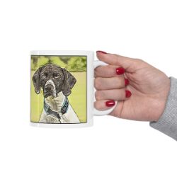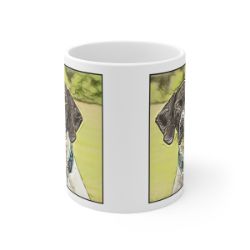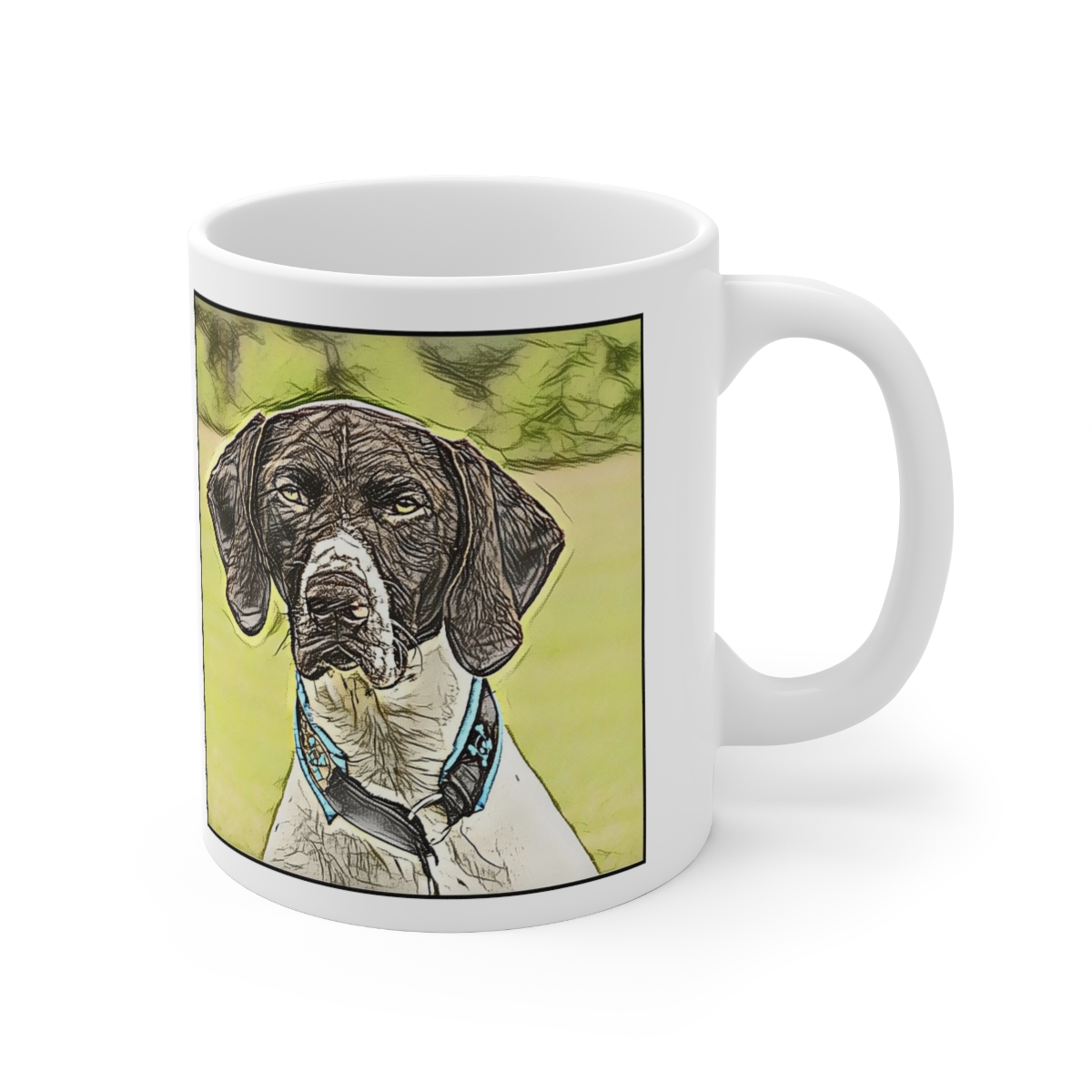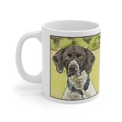 Keep cozy and warm with a nice cuppa, featuring the beloved German Shorthaired Pointer dog breed stylized in our Coloromo Penciled In art on a ceramic mug. Lead and BPA-free, these durable mugs are also microwave & dishwasher-safe. Made of white, resilient ceramic in an 11-ounce size, this is the perfect gift for coffee, tea, and hot chocolate lovers.