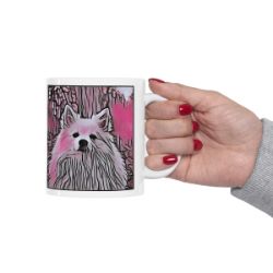 Keep cozy and warm with a nice cuppa, featuring the beloved German Spitz dog breed stylized in our Coloromo Comic Pink art on a ceramic mug. Lead and BPA-free, these durable mugs are also microwave & dishwasher-safe. Made of white, resilient ceramic in an 11-ounce size, this is the perfect gift for coffee, tea, and hot chocolate lovers.