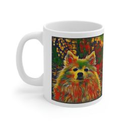 Keep cozy and warm with a nice cuppa, featuring the beloved German Spitz dog breed stylized in our Coloromo Garden Veggie art on a ceramic mug. Lead and BPA-free, these durable mugs are also microwave & dishwasher-safe. Made of white, resilient ceramic in an 11-ounce size, this is the perfect gift for coffee, tea, and hot chocolate lovers.