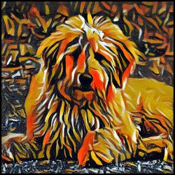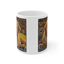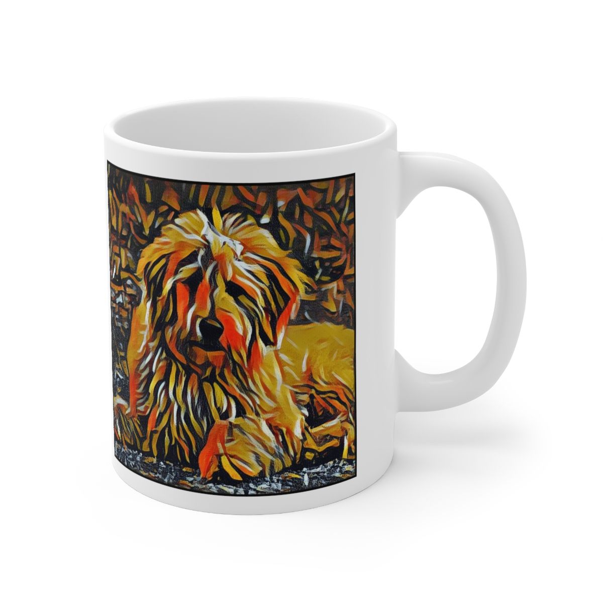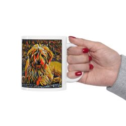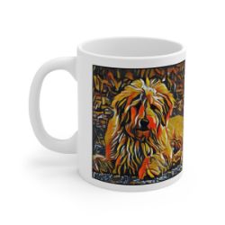 Keep cozy and warm with a nice cuppa, featuring the beloved Golden Doodle dog breed stylized in our Coloromo Graffiti Haus art on a ceramic mug. Lead and BPA-free, these durable mugs are also microwave & dishwasher-safe. Made of white, resilient ceramic in an 11-ounce size, this is the perfect gift for coffee, tea, and hot chocolate lovers.
