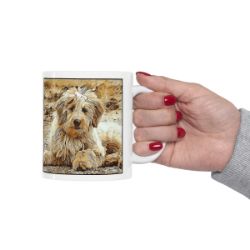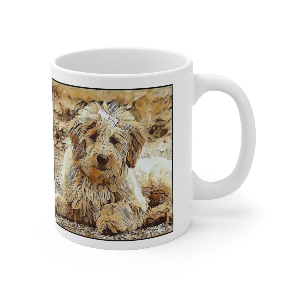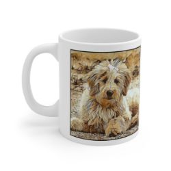 Keep cozy and warm with a nice cuppa, featuring the beloved Golden Doodle dog breed stylized in our Coloromo Hairy Styles art on a ceramic mug. Lead and BPA-free, these durable mugs are also microwave & dishwasher-safe. Made of white, resilient ceramic in an 11-ounce size, this is the perfect gift for coffee, tea, and hot chocolate lovers.