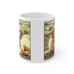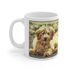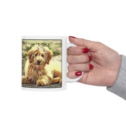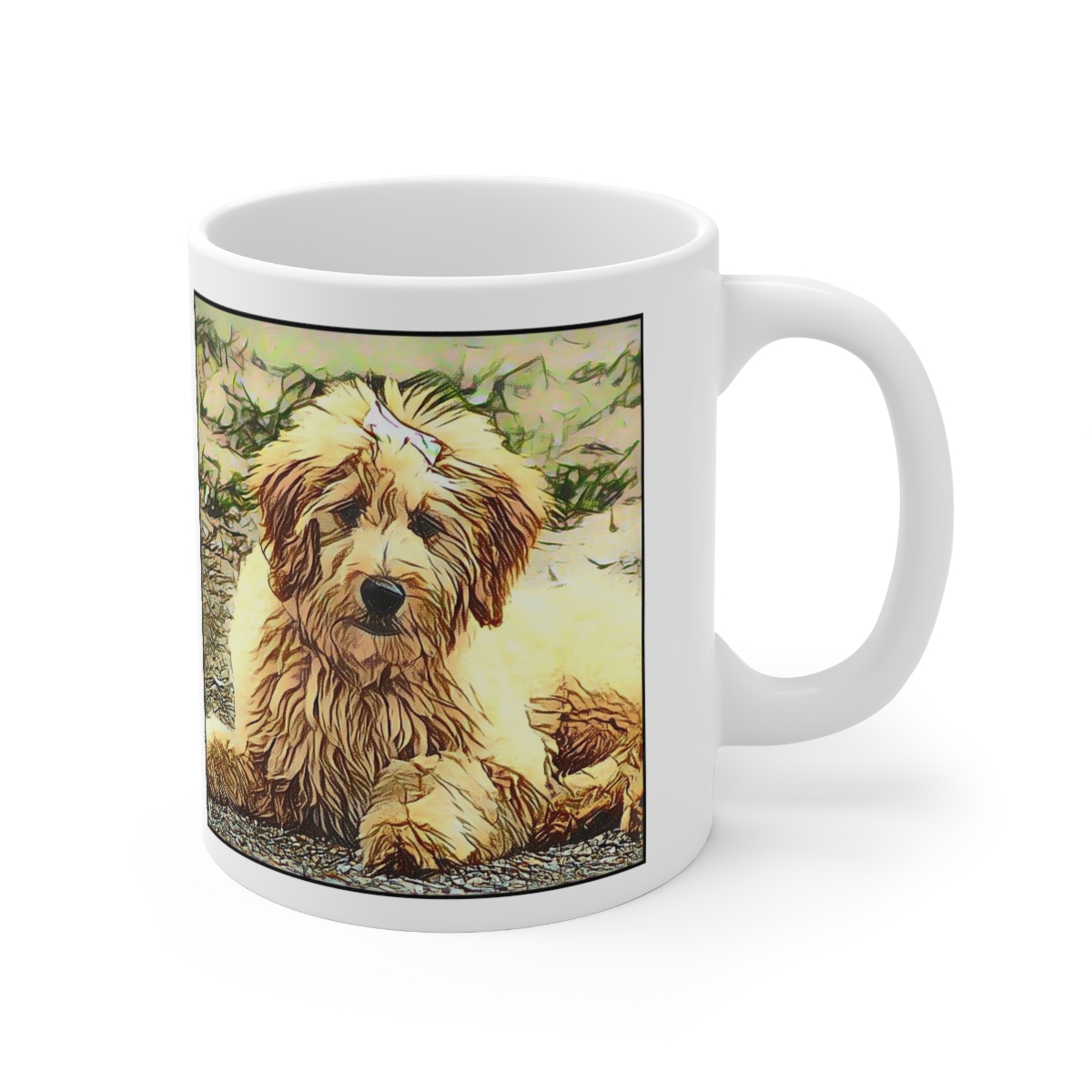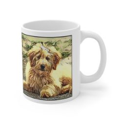 Keep cozy and warm with a nice cuppa, featuring the beloved Golden Doodle dog breed stylized in our Coloromo Penciled In art on a ceramic mug. Lead and BPA-free, these durable mugs are also microwave & dishwasher-safe. Made of white, resilient ceramic in an 11-ounce size, this is the perfect gift for coffee, tea, and hot chocolate lovers.