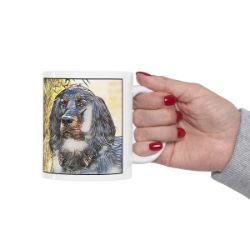 Keep cozy and warm with a nice cuppa, featuring the beloved Gordon Setter dog breed stylized in our Coloromo Penciled In art on a ceramic mug. Lead and BPA-free, these durable mugs are also microwave & dishwasher-safe. Made of white, resilient ceramic in an 11-ounce size, this is the perfect gift for coffee, tea, and hot chocolate lovers.