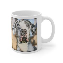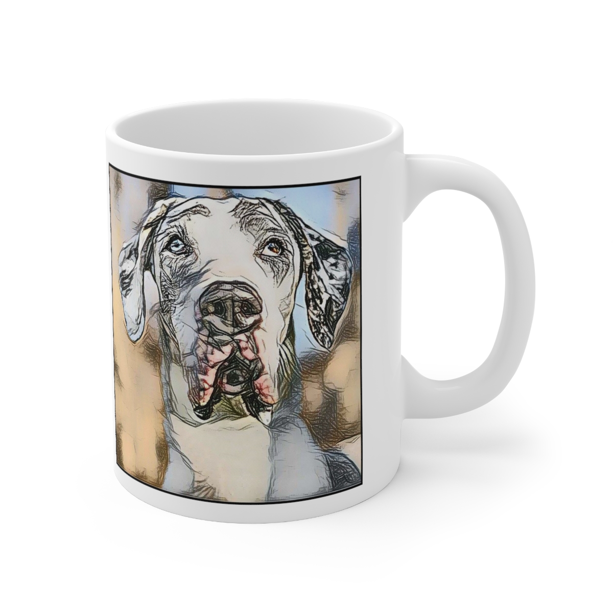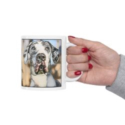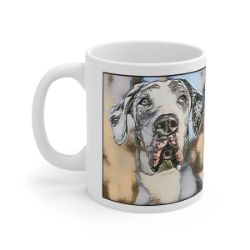 Keep cozy and warm with a nice cuppa, featuring the beloved Great Dane dog breed stylized in our Coloromo Penciled In art on a ceramic mug. Lead and BPA-free, these durable mugs are also microwave & dishwasher-safe. Made of white, resilient ceramic in an 11-ounce size, this is the perfect gift for coffee, tea, and hot chocolate lovers.