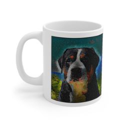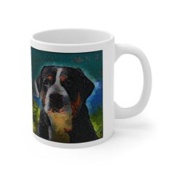 Keep cozy and warm with a nice cuppa, featuring the beloved Greater Swiss Mountain Dog dog breed stylized in our Coloromo Rock Candy art on a ceramic mug. Lead and BPA-free, these durable mugs are also microwave & dishwasher-safe. Made of white, resilient ceramic in an 11-ounce size, this is the perfect gift for coffee, tea, and hot chocolate lovers.
