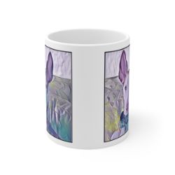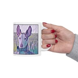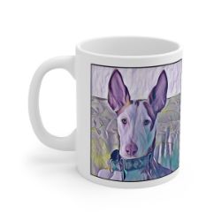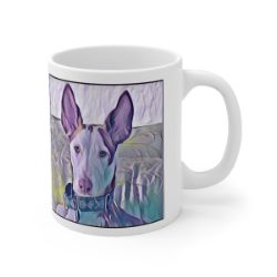 Keep cozy and warm with a nice cuppa, featuring the beloved Ibizan Hound dog breed stylized in our Coloromo Lavender Ice art on a ceramic mug. Lead and BPA-free, these durable mugs are also microwave & dishwasher-safe. Made of white, resilient ceramic in an 11-ounce size, this is the perfect gift for coffee, tea, and hot chocolate lovers.