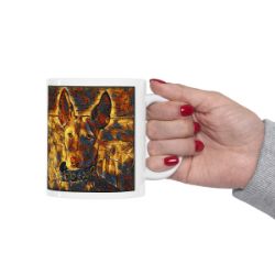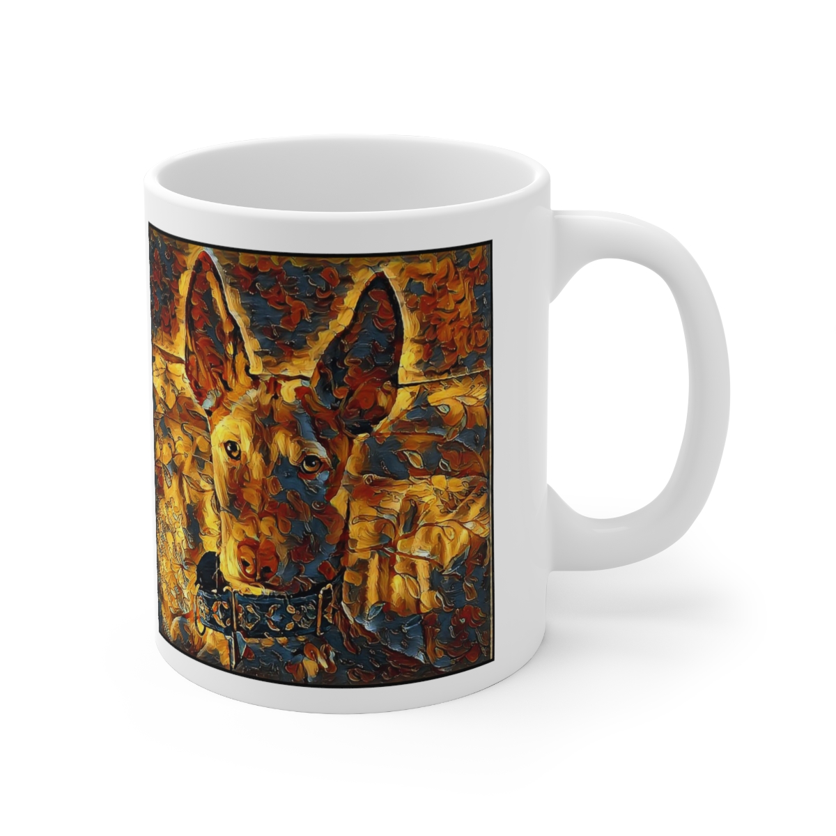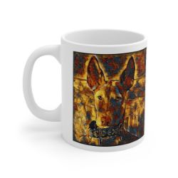 Keep cozy and warm with a nice cuppa, featuring the beloved Ibizan Hound dog breed stylized in our Coloromo Painterly art on a ceramic mug. Lead and BPA-free, these durable mugs are also microwave & dishwasher-safe. Made of white, resilient ceramic in an 11-ounce size, this is the perfect gift for coffee, tea, and hot chocolate lovers.