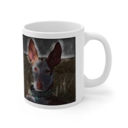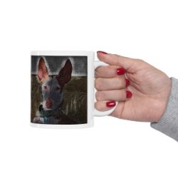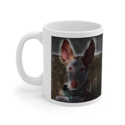 Keep cozy and warm with a nice cuppa, featuring the beloved Ibizan Hound dog breed stylized in our Coloromo Rock Candy art on a ceramic mug. Lead and BPA-free, these durable mugs are also microwave & dishwasher-safe. Made of white, resilient ceramic in an 11-ounce size, this is the perfect gift for coffee, tea, and hot chocolate lovers.