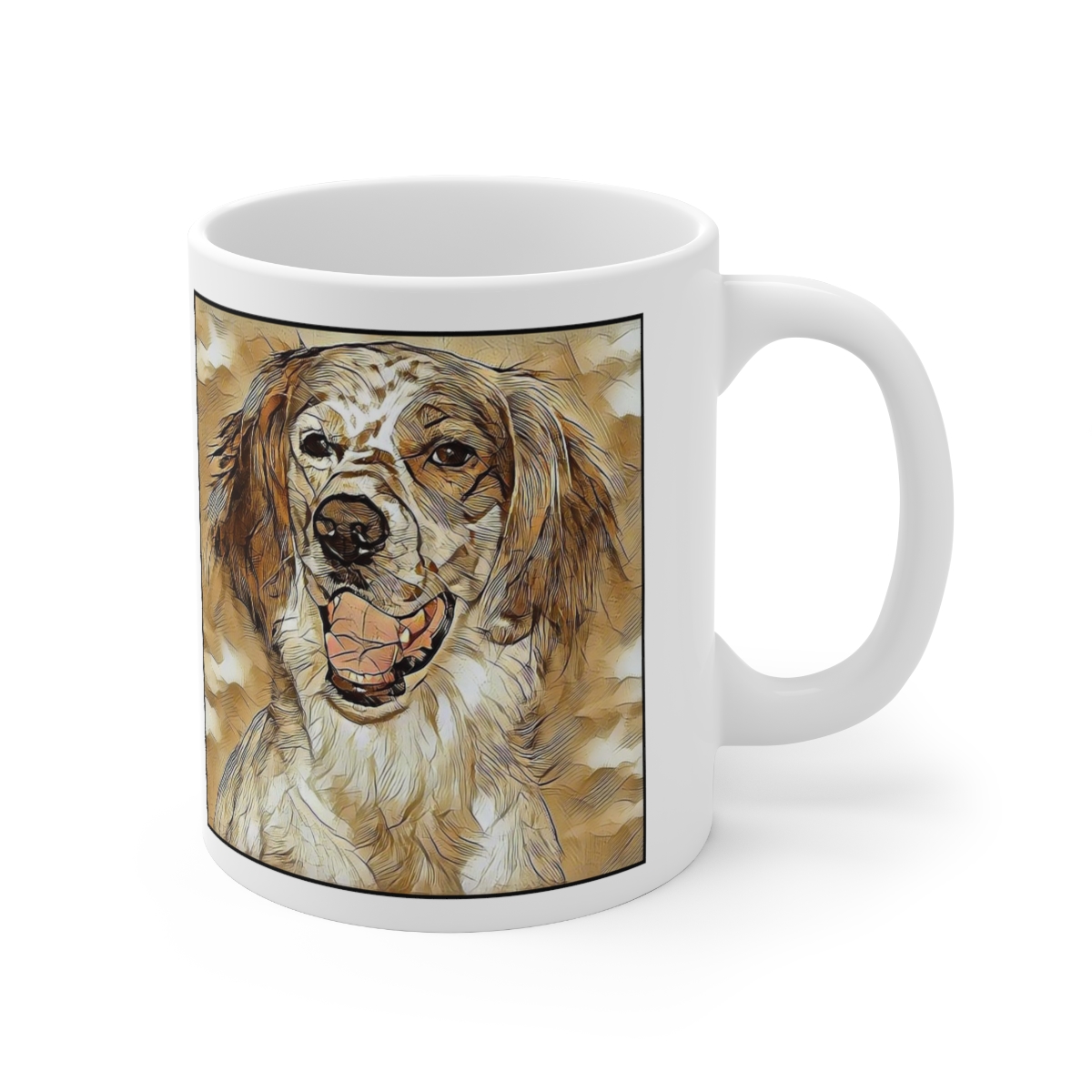 Keep cozy and warm with a nice cuppa, featuring the beloved Irish Red and White Setter dog breed stylized in our Coloromo Hairy Styles art on a ceramic mug. Lead and BPA-free, these durable mugs are also microwave & dishwasher-safe. Made of white, resilient ceramic in an 11-ounce size, this is the perfect gift for coffee, tea, and hot chocolate lovers.