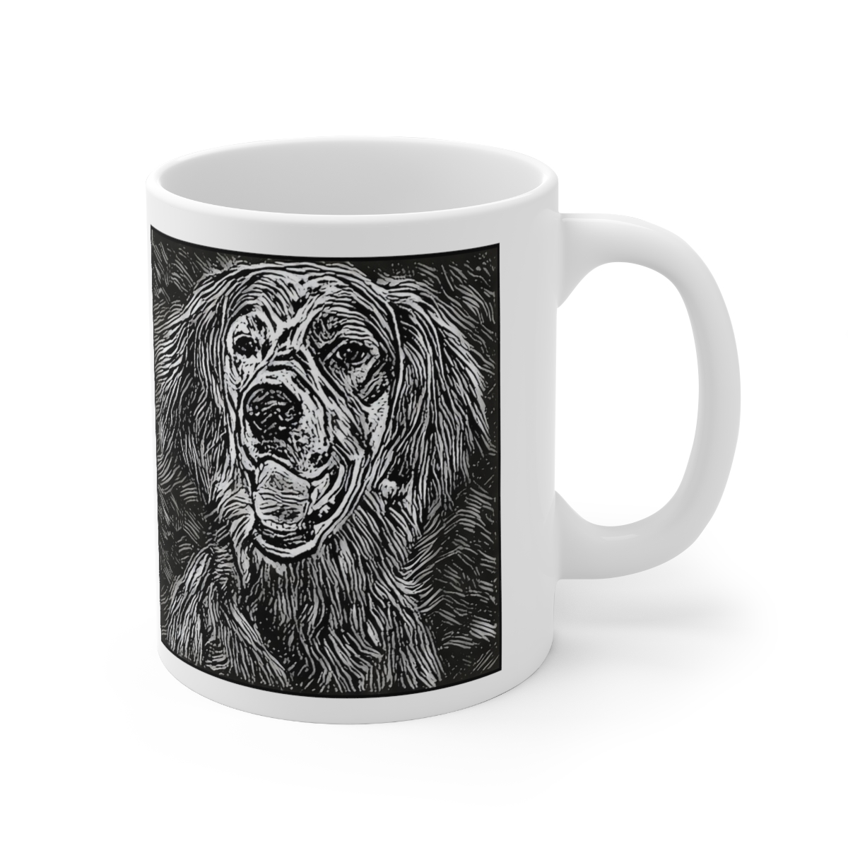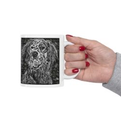 Keep cozy and warm with a nice cuppa, featuring the beloved Irish Red and White Setter dog breed stylized in our Coloromo Licorice Lines art on a ceramic mug. Lead and BPA-free, these durable mugs are also microwave & dishwasher-safe. Made of white, resilient ceramic in an 11-ounce size, this is the perfect gift for coffee, tea, and hot chocolate lovers.