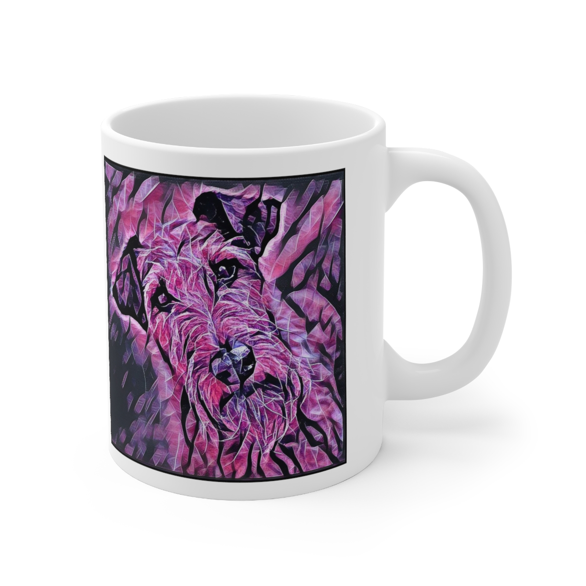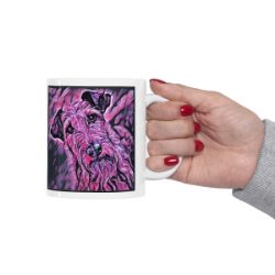 Keep cozy and warm with a nice cuppa, featuring the beloved Irish Terrier dog breed stylized in our Coloromo Violet Femmes art on a ceramic mug. Lead and BPA-free, these durable mugs are also microwave & dishwasher-safe. Made of white, resilient ceramic in an 11-ounce size, this is the perfect gift for coffee, tea, and hot chocolate lovers.