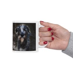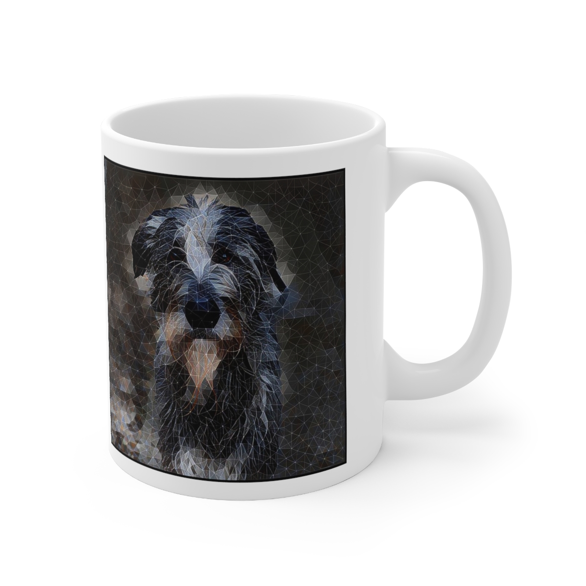 Keep cozy and warm with a nice cuppa, featuring the beloved Irish Wolfhound dog breed stylized in our Coloromo Rock Candy art on a ceramic mug. Lead and BPA-free, these durable mugs are also microwave & dishwasher-safe. Made of white, resilient ceramic in an 11-ounce size, this is the perfect gift for coffee, tea, and hot chocolate lovers.