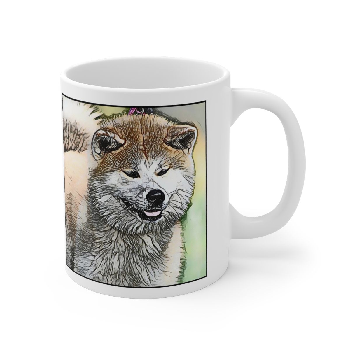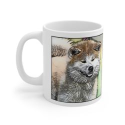 Keep cozy and warm with a nice cuppa, featuring the beloved Japanese Akita Inu dog breed stylized in our Coloromo Penciled In art on a ceramic mug. Lead and BPA-free, these durable mugs are also microwave & dishwasher-safe. Made of white, resilient ceramic in an 11-ounce size, this is the perfect gift for coffee, tea, and hot chocolate lovers.