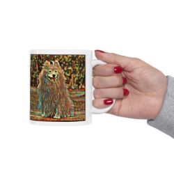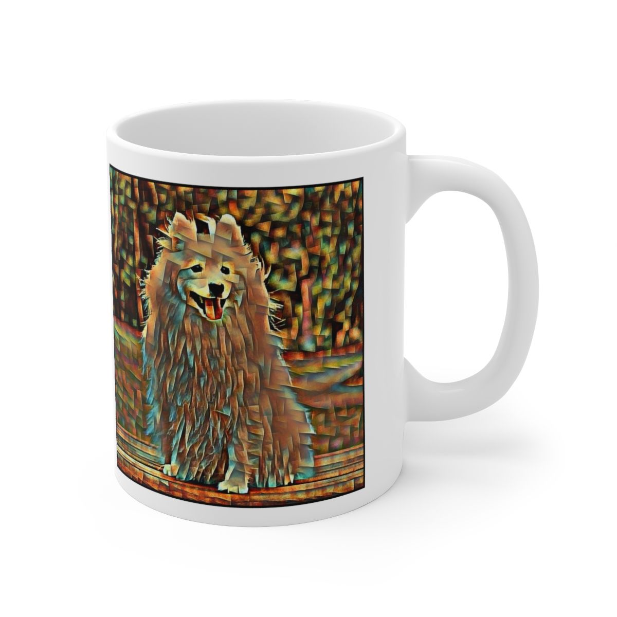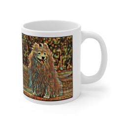 Keep cozy and warm with a nice cuppa, featuring the beloved Japanese Spitz dog breed stylized in our Coloromo Cool Cubist art on a ceramic mug. Lead and BPA-free, these durable mugs are also microwave & dishwasher-safe. Made of white, resilient ceramic in an 11-ounce size, this is the perfect gift for coffee, tea, and hot chocolate lovers.