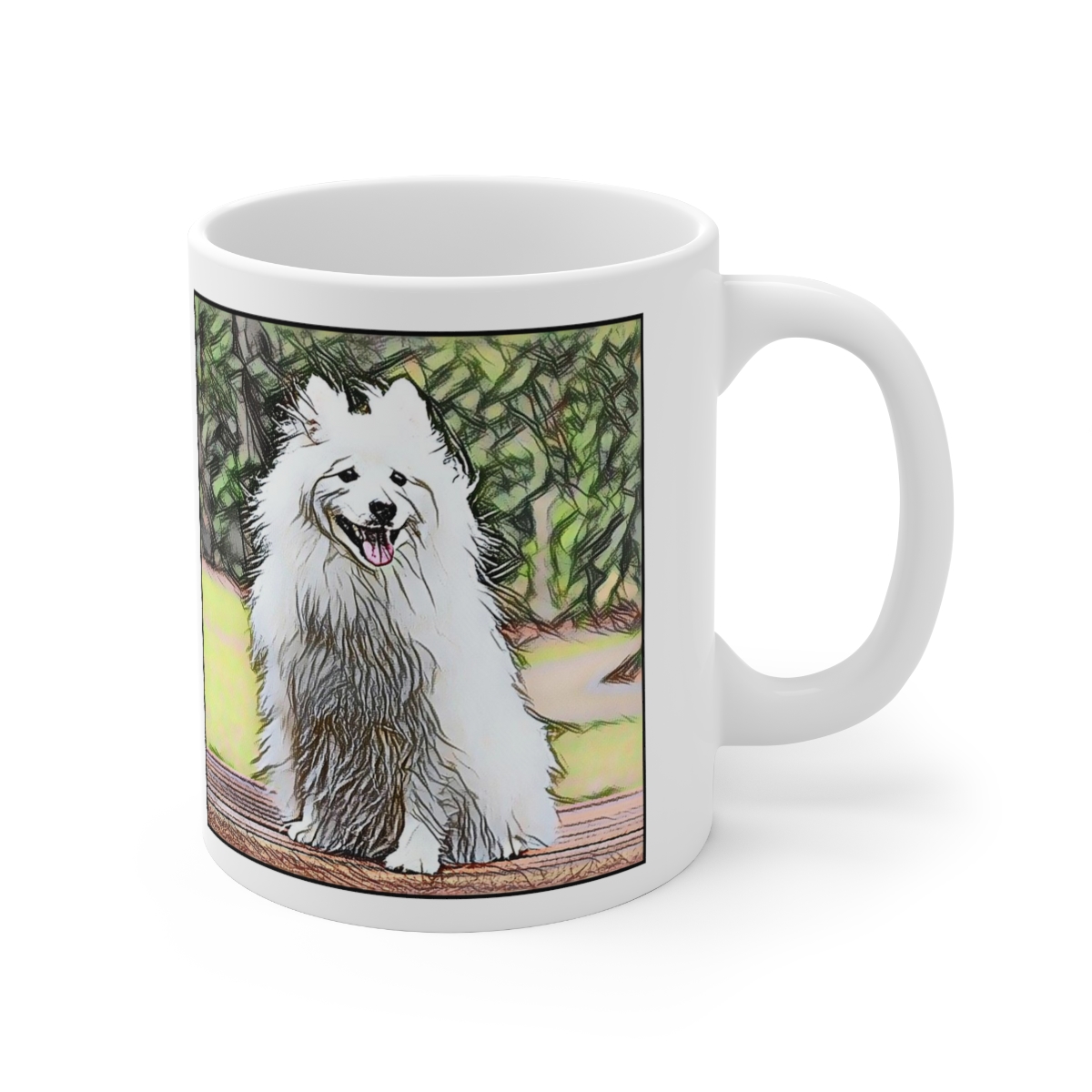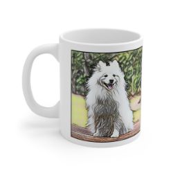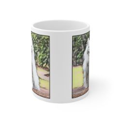 Keep cozy and warm with a nice cuppa, featuring the beloved Japanese Spitz dog breed stylized in our Coloromo Penciled In art on a ceramic mug. Lead and BPA-free, these durable mugs are also microwave & dishwasher-safe. Made of white, resilient ceramic in an 11-ounce size, this is the perfect gift for coffee, tea, and hot chocolate lovers.