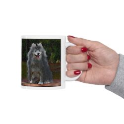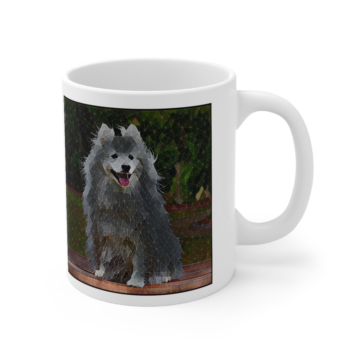 Keep cozy and warm with a nice cuppa, featuring the beloved Japanese Spitz dog breed stylized in our Coloromo Rock Candy art on a ceramic mug. Lead and BPA-free, these durable mugs are also microwave & dishwasher-safe. Made of white, resilient ceramic in an 11-ounce size, this is the perfect gift for coffee, tea, and hot chocolate lovers.