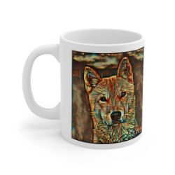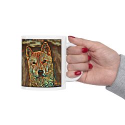 Keep cozy and warm with a nice cuppa, featuring the beloved Jindo dog breed stylized in our Coloromo Cool Cubist art on a ceramic mug. Lead and BPA-free, these durable mugs are also microwave & dishwasher-safe. Made of white, resilient ceramic in an 11-ounce size, this is the perfect gift for coffee, tea, and hot chocolate lovers.