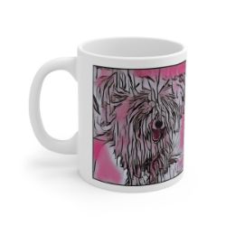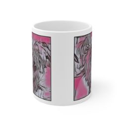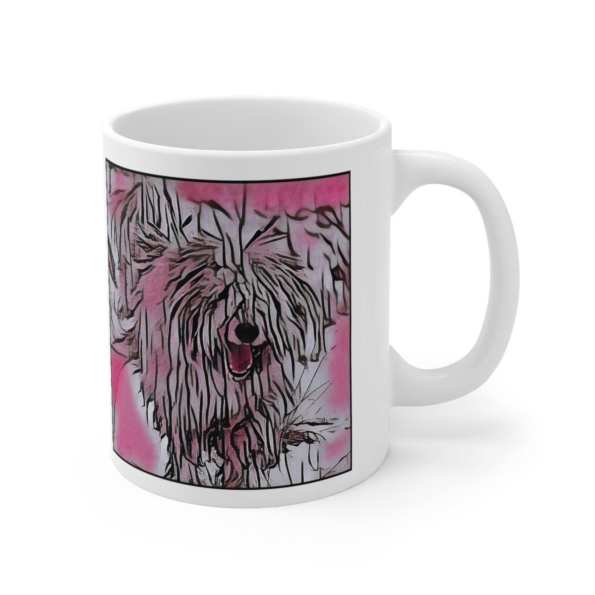 Keep cozy and warm with a nice cuppa, featuring the beloved Komondor dog breed stylized in our Coloromo Comic Pink art on a ceramic mug. Lead and BPA-free, these durable mugs are also microwave & dishwasher-safe. Made of white, resilient ceramic in an 11-ounce size, this is the perfect gift for coffee, tea, and hot chocolate lovers.